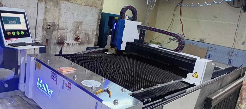 تقطيع CNC ولّيَزر عالي الدقة داخل الورشة.